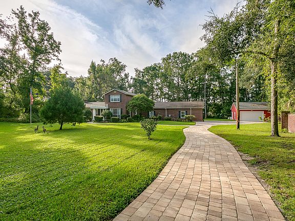 Custom-built, riverfront estate in private Green Cove Springs includes all the luxuries! Dock with covered boat lift, newly renovated screened pool, gourmet kitchen and 4+ garage spaces! Room for all your toys & no covenants/restrictions! Approx 1.94 ac & 300'+ on the St Johns. Brick privacy wall runs the length of the property. New paver driveway leads you to the recently constructed 2+ car detached garage/workshop, continues around the pool deck & surrounds the home. 500' Artesian well, New Trane ACs, fruit trees and more! Custom moulding throughout home, closed cell spray foam insulation under home for energy efficiency & moisture protection. Transferable termite bond & Home Warranty included! Everything about this home says ''Quality''! Minutes to Fleming Island. See Virtual Tour!