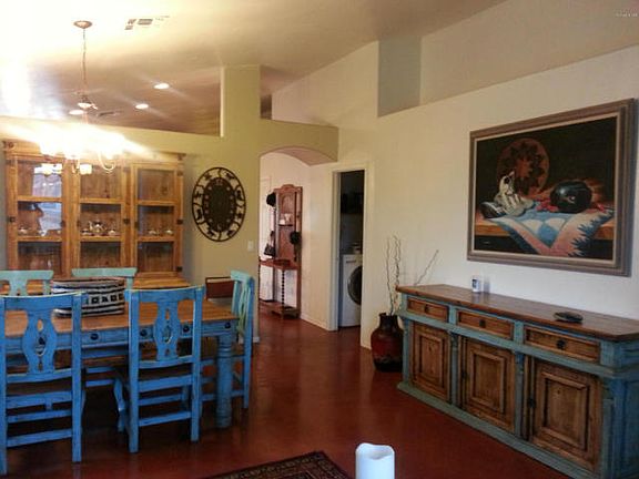 Fabulous 4 bedroom 2 bath home with 3 CAR GARAGE. This home is move in ready - Formal living and dining room. KITCHEN HAS BEEN ENLARGED AND REMODELED, large island, tile counter tops, and back-splash, tons of cabinets, separate pantry,and stainless appliances, perfect for your family. Cozy Family room located right off of kitchen. High vaulted ceilings, niches, and arches, designer colors, along with stained and sealed concrete floors all add to the character of this home. Large master bedroom and bath with garden tub, separate shower and dual sinks. The 2nd bathroom is a Jack and Jill with easy access to other bedrooms. Large backyard with plenty of room. Home is close to loop/Santa Cruz River Park, Spectrum Mall. Shopping and dining are just some of the amenities that are near.