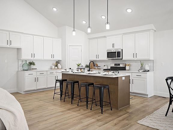 Trendsetter Homes at Lion's Gate. This home boasts an island Kitchen with walk-in pantry, open to a Great Room of truly great proportions and Dining Room large enough to accommodate most any crowd. On pleasant days, set a table on your large covered rear porch and dine al fresco. Convenience meets great design in the Master Suite, with its two-room private bath, huge walk-in closet, and private entrance to the Laundry Room. Other features include luxury vinyl flooring throughout the main living, dining and kitchen areas, sodded front and side yards, 95% effic. furnace, and 10-year insured warranty.*Pictures and VR are representative of floor plan. Actual colors and finishes may vary.