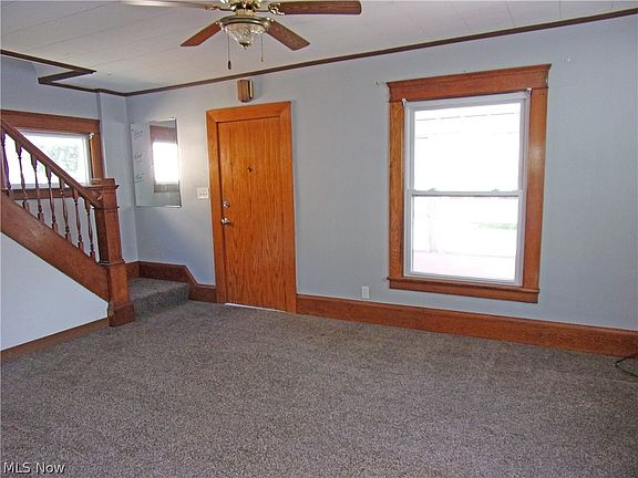 Why pay rent when you can own your own home and park in your own garage? This 3 bedroom colonial home is vinyl sided with updated vinyl windows. Formal dining room, spacious living room, mud room, one car garage, and shed. Enclosed front porch, beautiful natural woodwork throughout. Hardwood floors under carpeting. Partially applianced kitchen, shower in lower level which and the floor has just been painted. Ceiling fans in most rooms. Such a great opportunity for you. Call today to schedule your private showing.
