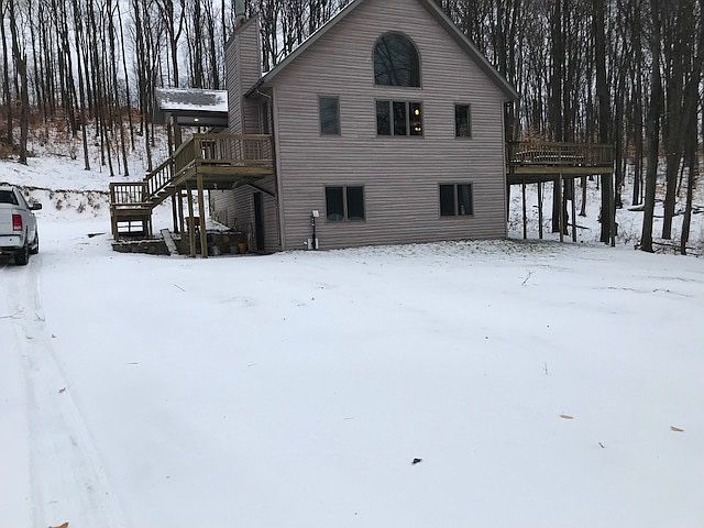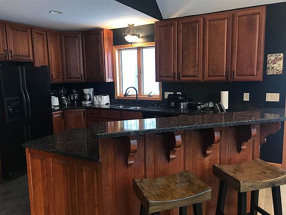 Home on 11 acres in a very private setting. Good sized family home with 4 Bedrooms, 2 3/4 baths, full mostly finished walkout Basement. Update Kitchen with Granite countertops and Cherry cabinets. Beautiful Stone Fireplace in the living room, Pellet stove in the basement for supplemental heat. Open floor plan with cathedral ceilings with lots of windows for a light airy home. Main floor Laundry. Large 28 x 42 detached Garage with openers. Two separate outbuilding, 20 x 24 and 14 x 20 for storage or maybe make one into a kids playhouse or man cave.
