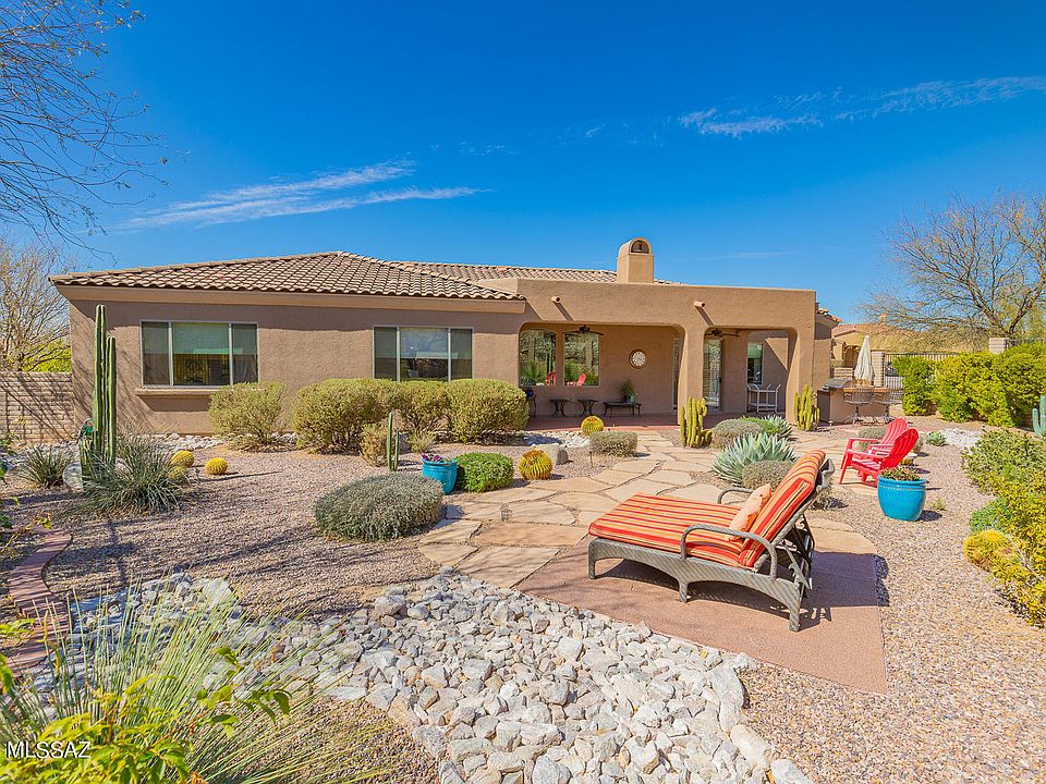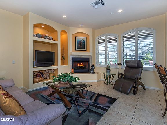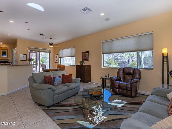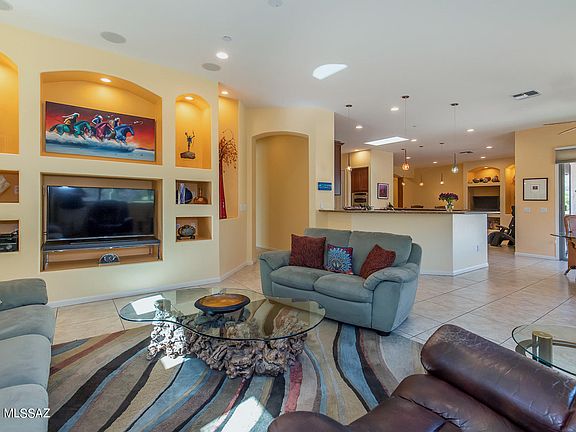 * Striking semi-custom 5BD/3BA (3,540 sq ft) home on large, corner cul-de-sac lot in the heart of Oro Valley boasts a circular drive and dual mountain views. Enter to find a formal living room with fireplace, formal dining room, plus open concept Great room with media wall and surround sound. Central gourmet kitchen hosts granite counters, stainless appliances, center island w/ skylight, dual breakfast bars and dining nook. Large Master suite with patio access hosts a walk-in shower, corner soaking tub flanked by dual vanities, and large walk-in closet. Second bedroom features office built-ins. Oversize tile, wood shutters, 3 car garage and mature landscaping. Exterior recently repainted. Gorgeous backyard boasts an extended covered patio, built-in BBQ station and flagstone paver walkways.