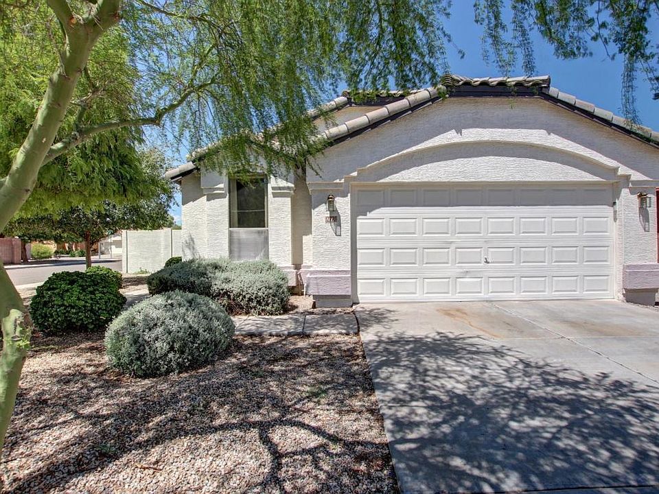 Happiness is just a door step away! Charming Avondale home on a premium corner lot with great curb appeal! Wonderful open floor plan with vaulted ceilings, designer paint tones, and picture windows throughout. Great room has gorgeous wood flooring! Create a culinary delight in the eat in kitchen with a plethora of cabinets, ample counter space, and a breakfast bar. Three spacious bedrooms with plush carpeting. Master includes a walk in closet and spa like bath with dual sink vanity, garden tub, and separate shower. Enjoy the amazing Arizona weather in the serene backyard with a covered patio and low care landscape! Make this home your first and last stop!