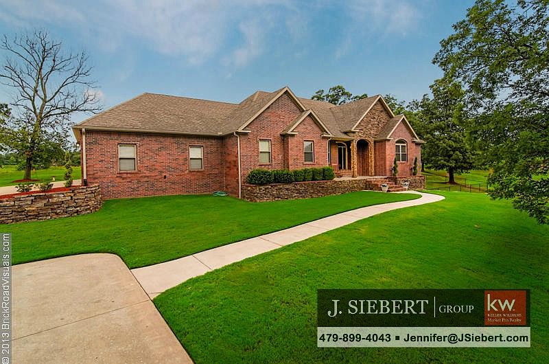 CONTACT THE OFFICIAL LISTING AGENT, JENNIFER SIEBERT, FOR MORE INFORMATION VIA TEXT OR PHONE AT 479-899-4043 OR VIA EMAIL AT JENNIFER@JSIEBERT.COM ~ NEW PRICE/Priced to SELL! ~ Custom 2-level home on 5 gorgeous acres minutes from Bentonville. 4 BR/4BA. Full basement for entertaining with 2nd full kitchen. Area of upscale homes. Paved access. You won't find another home like this on the market! All BR upstairs. Great layout. Full media room / family room/ kitchen downstairs w/ safe room. 102" projection TV w/ surround sound conveys. Additional equipment to convey with acceptable offer: Pool table, Foosball table, 4-wheeler w/ trailer.