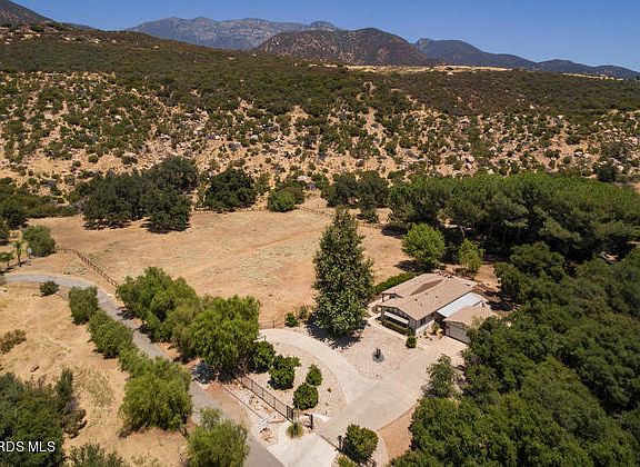 Claim your little piece of paradise at the end of Treeranch Road in Upper Ojai. This quiet serene setting offers 2.82 acres set against the mountains just under the Los Padres National Forest. The views are magical, the possibilities endless for the pasture area. Bring your Horses, start your organic gardening or build a pool are just some ideas. The home has an easy floor plan that allows for living indoors and outdoors. Inside one will find a gourmet kitchen with Delonghi range, professional range hood, wine frig, three bedrooms and an office or a fourth bedroom as it has a closet, two upgraded baths and a built-in dining room cabinet with interior lights. The interior was recently painted. Outside is a large covered patio that has access to the two-car garage as well as a spacious storage room. Imagine quiet nights sitting in the back-patio area around the fire pit.The front of the home is enhanced by the Basalt stone feature and the beautiful Sycamore Tree. Enjoy the bounty of the navel and Valencia orange, peach, plum, loquat, lemon, apple and mandarin trees. You will never be out of oranges again! The entire parcel is fenced in with the pasture area separated from the home area with an automatic steel custom designed gate.