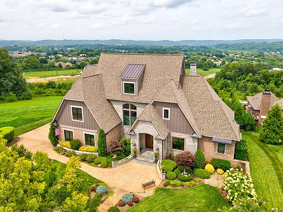 Enjoy incredible 360 degree views from the highest spot in West Knoxville, breathtaking mountain views and sunsets. Custom build immaculate 2-story home, all brick w/ hardiplank accents, very open plan w/ large rooms and 10-ft ceilings, elegant kitchen w/ white silver satin cabinets - marble countertops - Dacor gas cooktop - Electrouux double ovens - 2 Bosch dishwashers - massive island & walk-in pantry flows into den w/ 16-ft knotty pine ceiling - limestone fireplace & impressive glass doors leading to patio overlooking salt water infinity pool, MBR on main w/ 15-ft barrel ceiling & posh bath (walk-in tile shower - 2 sinks w/ marble tops & his/her walk-in closets), BR-2 on main w/ steam shower, 2nd floor features 2 very large bedrooms, each w/ own bath - media room - loft area & storage