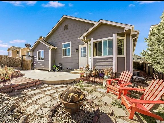 This home is a ranch-style open floor plan. The main living area features hardwood flooring, vaulted ceilings, and a gas fireplace. The kitchen is equipped with brand new stainless steel appliances, travertine tile flooring, and a pantry. The large master bedroom is 12 x 14 and has vaulted ceilings, 5 piece master bath, and a walk-in closet that is 10 x 5. Two additional bedrooms, which is 10 x 10 and the other is 9 x 8 and a full bath. Washer and dryer are included along with a two-car garage. The basement is an unfinished basement and ideal for storage space. The backyard offers incredible views to the Cherry Creek Trail. This is ideal for relaxing or entertaining guests. You can sit on the patio and watch the wildlife in the heavily treed open space. The backyard is also low-maintenance zero-scaped as well.