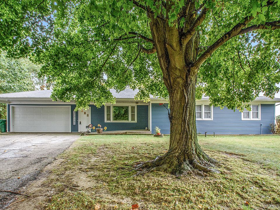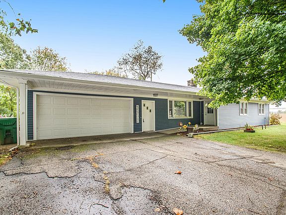 Large ranch style 3 bedroom, 1 bath home located in a quiet county setting with a 2 car attached garage. Home is wheelchair accessible and has pocket doors with ramp entrance. Home has many updates including wood flooring, ceramic flooring, siding, windows and septic system with 2 drain fields. Kitchen and bath were updated 8 years ago. All newer appliances and much more. Main floor laundry, including washer and dryer. There is a full basement, part of the basement has been finished and lots of room for storage. Property is a little less than an acre and is partially wooded with farmland on one side of the property and has many trees, shrubs, and lots of perennials and a beautiful rose garden.