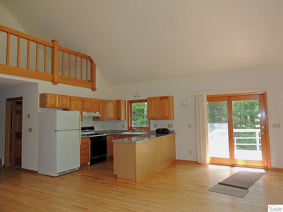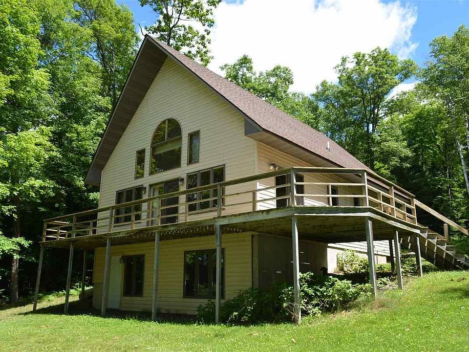 Beautiful, sold-built, 4 BR lake home on 5 wooded acres with 165 ft. of west-facing, sand-bottom frontage. Oak floors in kitchen, dining area & living room and oak trim throughout. Full, finished, walkout basement with1 bedroom, office & full bath. Wrap-around deck, splendid lake views and custom cedar stairs to lakeshore. A 2-car garage with upper level workshop completes this listing. New roof installed Fall 2015!