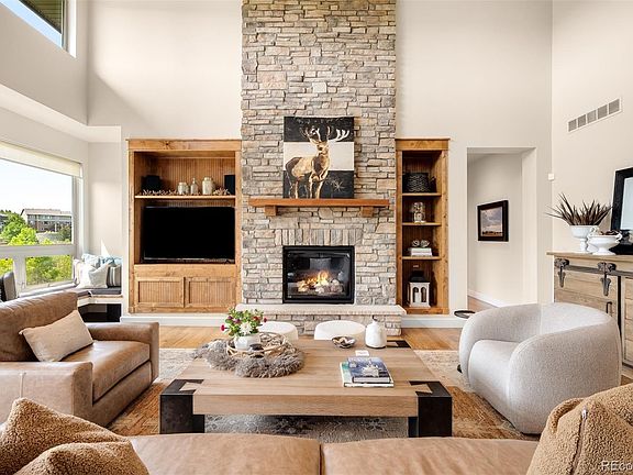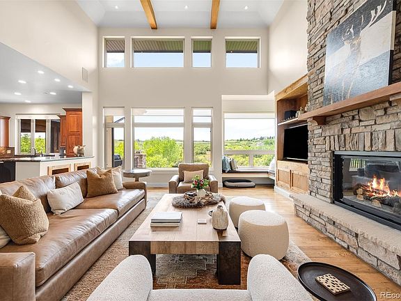 - Description: Warm And Inviting Living Space Anchored By A Floor-To-Ceiling Stone Fireplace And Expansive Windows That Frame Unobstructed Views Of Daniels Park