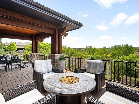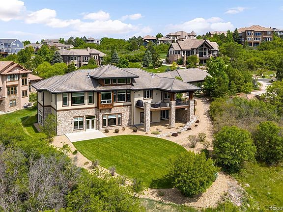 Tucked at the end of a quiet cul-de-sac and framed by the preserved expanse of Daniels Park, this custom-built residence offers an extraordinary blend of architectural sophistication and serene natural beauty. Set on over three-quarters of an acre within one of Castle Pines' most coveted gated enclaves, the home captures panoramic views of the Front Range, a rare sense of seclusion just minutes from premier golf clubs, top-rated schools, and city access. Inside, light-filled interiors unfold with quiet drama. A soaring great room with a striking stone fireplace and expansive windows frames views of Daniels Park, where elk and buffalo roam, blurring the line between luxury and nature. The chef’s kitchen is both sculptural and functional, anchored by an oversized stone-wrapped island and outfitted with premium appliances, custom tilework, and a walk-in pantry, opening effortlessly to a sunlit breakfast nook and fireside sitting room. The main-floor primary suite offers a private, restorative retreat with its own fireplace, breathtaking views, and a spa-like bath featuring a soaking tub, dual vanities, a glass-enclosed shower, and two generous walk-in dressing rooms. A formal dining room with an adjacent butler’s pantry, executive-style office with custom-built-ins, and a well-appointed mudroom complete the main level. The walk-out lower level is a destination in its own right, designed for entertaining, wellness, and extended stays. A spacious lounge with a full wet bar opens to a covered terrace, while a dedicated media room, mirrored fitness studio, and three private guest suites with en-suite baths provide every comfort. Additional highlights include an oversized five-car garage, manicured landscaping, and direct access to miles of trails. Residents of this secure, amenity-rich community enjoy access to a private clubhouse, pool, and 24-hour gated security, offering a lifestyle that is as elevated as it is effortless.