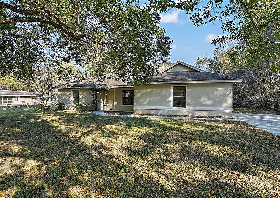 One or more photo(s) has been virtually staged. Escape the hustle and bustle to the privacy of this 3 bedroom, 2 bathroom single family home and additional 2 bedroom, 2 bathroom mobile home nestled on a private .97 acre lot! The 3BR/2BA home offers an open floor plan ideal for hosting and entertaining guests. Featuring a formal dining room, sizable guest bedrooms, inside laundry and an eat-in kitchen that overlooks the inviting family room. The spacious master bedroom offers a walk-in closet and private bath with dual sinks, garden tub and separate shower. Out back you'll find a covered patio that overlooks the beautiful backyard with plenty of room to roam. An excellent investment opportunity or family home for those buyers looking to add personal touches and finishes to make it the perfect forever home! Lake Kerr is located just minutes away where you can enjoy boating and fishing all year long! For the outdoor/nature lovers, Salt Springs Recreation Area, Observation Trail and Campground are also only minutes away. A must see! To help visualize this home's floor plan and to highlight its potential, virtual furnishings have been added to photos found in this listing. All Information recorded in the MLS is intended to be accurate but cannot be guaranteed, buyer advised to verify. Sold As-Is.