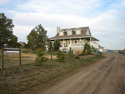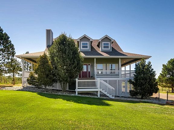 Rare opportunity minutes from Parker, amenities, and 470 to own horse property on 11.7 acres of peace and tranquility. Amazing farmhouse two story with wrap around porch with brand new carpet, and new painted walls and trim. Wood floors in the living room and dining room and kitchen. Great kitchen with white cabinets, corian tops, and brand new appliances. Private main floor master with relaxing bath, jetted tub, heated floor, & steam shower. Two bedrooms and bath upstairs. Finished walk out with kitchenette, bath, & bedroom. All ready for horses includes 4 stall barn with 6 pens and tack room with electricity and water. Plus arena, 7 cross fenced pastures, & 2 loafing sheds all cross fenced with access to hydrants and power. The best in country living & privacy with lots of pine trees plus yard with sprinklers. 3 Car garage and RV parking Brand new furnace and well pump & pressure tank. Check out the virtual tour link for more pictures the home.