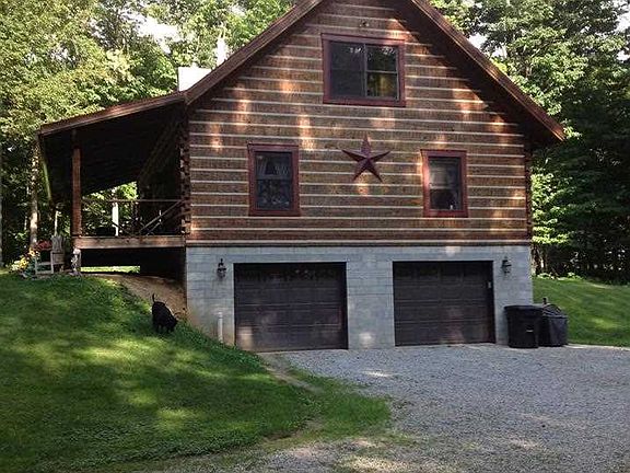 A fantastic log cabin located just outside of town and situated on 2.906 private wooded acres. The details on this cabin are just fantastic! Property features include: 3 bedrooms, 2 full baths, full unfinished basement, open floor plan with beautiful vaulted ceilings and exposed beams, a gorgeous custom stairwell leading to the master suite on the upper level, beautiful kitchen open to the dining area, and so much more! The custom kids playhouse outside even matches the main house and offers electric service to it. Separate shed with dog kennel attached. Private and peaceful is the best way to describe this property.