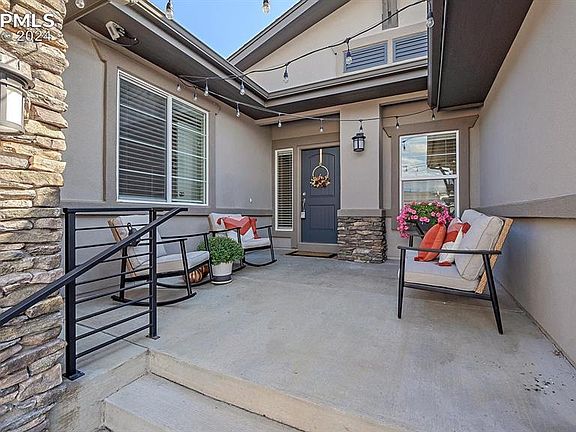 Welcome Home! This gorgeous ranch, located in the Village of Milan at Flying Horse Ranch is an enticing blend of contemporary living capturing the natural splendor of its surroundings and seamlessly combining convenience with tranquility. Boasting 5 bedrooms, 5 baths, a generous living space spanning 4,278 square feet and abundant windows that flood the space with natural light, framing the picturesque surroundings. The open-concept layout floods the interiors with natural light, creating an inviting atmosphere perfect for entertaining and unwinding. The kitchen is a chef's dream, featuring modern appliances, abundant storage, and stylish countertops. A cozy living area with a gas log fireplace and double sliders opening to that amazing view of Pikes Peak adds warmth and charm to the home. The primary suite is sizeable and has a spa like en-suite bathroom and spacious walk-in closet. The basement offers additional entertainment space with a gas log fireplace, cozy for family and guests, 2 additional bedrooms that share a 3/4 bath and a bedroom with a 3/4 ensuite bath and walk-in closet. Outside, the landscaped yard has breathtaking views of the mountains. This outdoor oasis provides an an amazing backdrop for gatherings and outdoor activities, making it quite easy to immerse oneself in the area's natural beauty. The property's proximity to parks, trails, and recreational facilities is a significant draw for outdoor enthusiasts. With easy access to major highways and public transportation, commuting to downtown areas or neighboring cities is a breeze. Don't miss out on embracing a lifestyle of comfort, convenience, and natural beauty in Colorado Springs. Whether you're seeking a peaceful retreat or a place to create lasting memories, this property offers the perfect setting to enjoy all that the area has to offer.