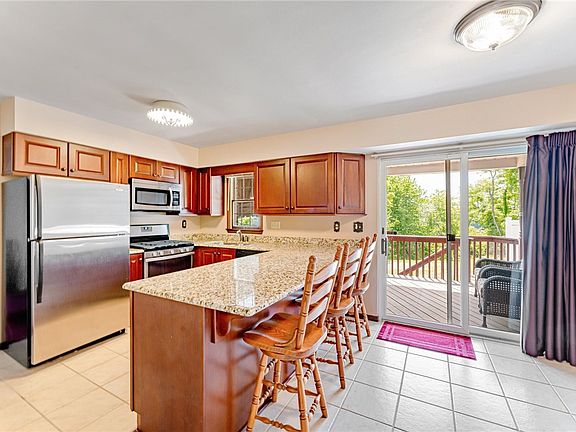 Beautiful 3 bedroom home with original owner care and charm. Tastefully updated kitchen with soft close cabinets and quartz countertops. Eat in kitchen and dining room. Sliding glass doors to the covered deck with privacy panels. Large living room with huge bay window for tons of natural light. Upstairs you'll find 3 generous size bedrooms, including a master with full bath. Plush carpet, large closets and lots of extra storage. The lower level has a gameroom with sliding doors to patio and laundry room with more storage. Clean garage. Access garage by car from alley at rear of house. Updated roof, HVAC, hot water tank. Less than a 10-minute walk to Highlands Middle & High Schools & fields. Convenient to Rte 366 & Rte 28, restaurants, shopping & groceries.