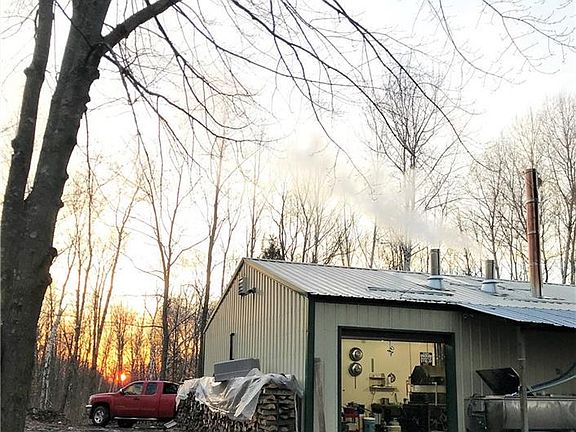 45 acres of beautiful woods set up as a turn key 2,000 tap sugar bush operation with the potential for growth. 1,650 taps set to go on 3/16" gravity tubing, 1,400 leading to one collection point near shop entrance. 1 BR/1BA cabin/home with certified kitchen and attached 29x27 shop. Offers a 24x16 shed w/ 16x8 lean to. If sugar making isn't your desire, just enjoy the peace and quiet, many trails throughout, and great hunting.