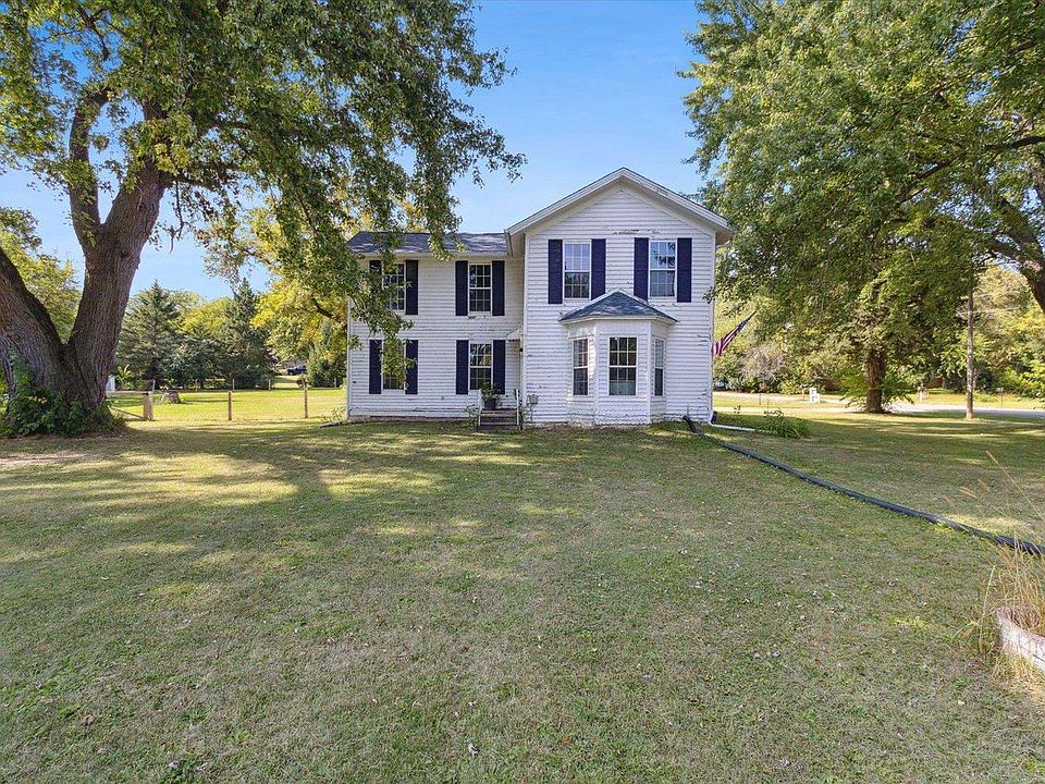 Great farmhouse style 2000+ sq foot, 4 bed (walk through bedroom for 1 bedroom upstairs), 2 full bath home on a 1+ acre partially wooded lot just 2 min from Janesville! The big stuff has been done on this home with it having a new roof in 2021, plumbing & electrical being updated in 2004 & it is also hooked up to city sewer & water. Just bring your ideas & finishing touches to this spacious, charming home that has wood floors, an adorable farmhouse style kitchen, cabin feel accents upstairs & a huge fenced-in-yard.