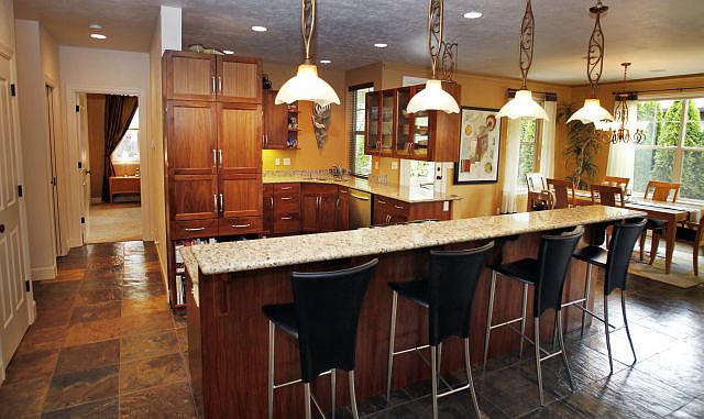 Gorgeous home built by David Smith. Coved ceilings, custom cabinetry, granite counters, stainless steel appliances, slate floors, gas fireplace with mantle. Master en suite on main with walk-in shower and soaking tub. Bonus room upstairs with wet bar and two bedrooms. Large home office with custom built-ins on main level. Beautiful landscaping around the home. Backyard with multiple putting greens and patios to entertain.