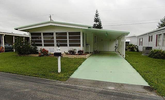 Lovely 2 bedroom/2 bath double wide. Located in a very active 55 plus community. The lot rent covers: Water, sewer, trash, lawn and cable. The kitchen has ceramic tile flooring. Newer carpeting in the bedrooms and laminate wood flooring throughout the living area. Home comes partially furnished and is super clean and MOVE-IN CONDITION. The Florida room is located just off the living room. The A/C system new in 2012. GREAT COMMUNITY IN DAYTONA BEACH! Over 700 homes available at http://www.fourstarhomes.com