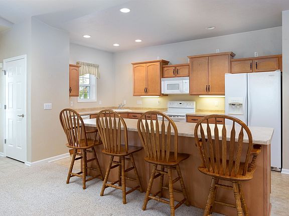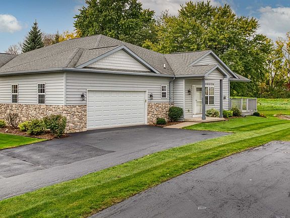 Split bedroom condo in South Neenah with pond views. Open concept from kitchen to living room with gas fireplace. Maple cabinetry and corner sink w/windows. Kitchen island seats 6 comfortably. Cathedral ceilings. Plenty of natural lighting throughout. Egress window in lower level for any future square footage desired. Quiet condo complex close to shopping, highway, walking trails and schools.