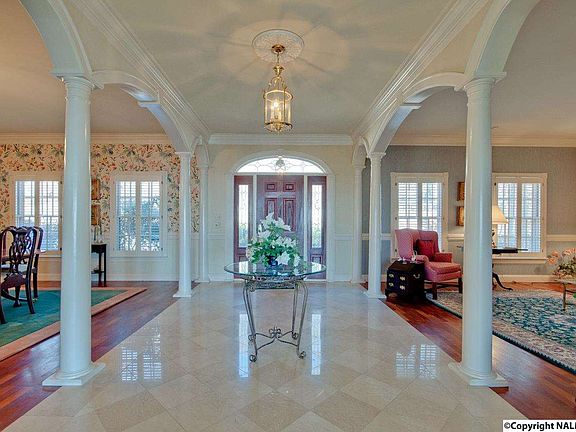 Custom built two story home (4381 s/f) plus unfinished basement (2665 s/f) corner lot. Easy one level living with flat circular drive for guests, and side entry garage. Ideal for entertaining, with large open rooms. Master suite on main level, 4 additional bedrooms upstairs, all with direct access to baths. 1890 sq ft of decking, majority covered. Winter view of city and rocket, private tree house in summer. Three walk in attics. Roof 5 yrs. Four water heaters; 3 HVACs. Whole house water filter system. Call Mary Ellen Peters: 256 797 0203 or team@MaryEllenPeters.com