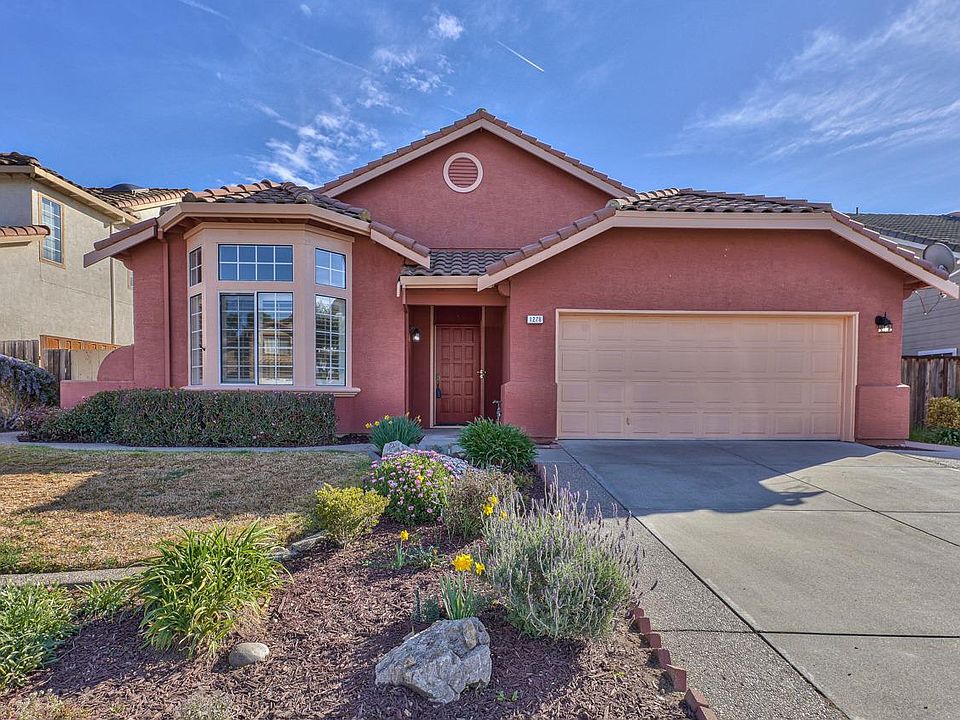 Don't let this move-in ready single level Creekbridge home pass you by. House offers 4 bedrooms, 2 baths, vaulted ceiling in the combination living/dining room and family room with wood burning fireplace. Shutters on the majority of the windows. The interior of the home has been completely repainted. In addition there is a solar system, that new buyers can assume the existing contract, that being said your utility bill will be much lower. The front and back yards are meticulously maintained and have mature rose bushes and many more shrubs. Another plus is the huge garage of 700+sq ft. There is a tremendous amount of quality cabinets plenty of room to have a workshop. Hurry as this house is just waiting for it's new owners.