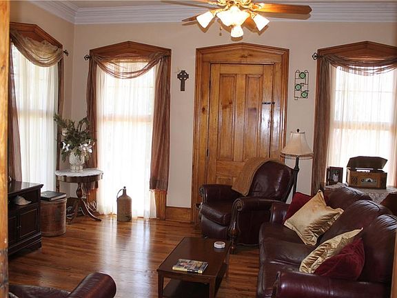 Beautiful Historical Brick Home completely restored loaded with charm & character, open front & side porches,12' ceilings, hardwood floors, replacement windows, wide plaster crown moldings throughout, kitchen opens to family room for entertaining with a gas fireplace, 2nd living room & parlor with gas fireplace, sweeping staircase for a formal entrance, could possibly have 1-2 bed rooms on 1st floor, back staircase, built-in Gunite swimming pool. Great opportunity for a B & B or Vacation Rental on 5 acres. Beautiful views in every direction!