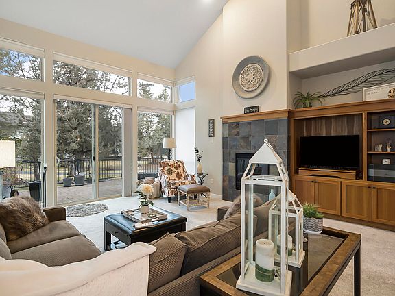 Enjoy the privacy and sounds of the soothing creek sitting on the paver patio. This beautiful and light 3BR, 2.5BA Creekside townhome in Eagle Crest is a perfect home to appreciate Central Oregon. Soaring ceilings and tons of natural light complement the warm feeling of relaxing by the fireplace. Primary suite on main level with large bathroom featuring dual vanity and soaking tub. Two bedrooms, full bath and loft area are upstairs, giving a great place for guests to stay. Private patio is pre wired for hot tub and plumed for bbq. Eagle Crest community has lots to offer, and this home is 1 block away from one of the many pools, tennis courts, fitness center, and walking trails. You will appreciate the events and amenities provided in this community such as discounts on golf, access to restaurants, and seasonal activities.You will forever be amazed by the mountain views provided all throughout the paved walking trails and roads. Partially furnished.