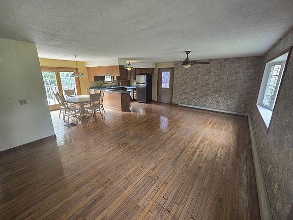 Modern 3BR Ranch home with open concept 1st floor sitting on almost 5 Acres and has large 28x28 garage with walk up 2nd story for storage or even future finished space. Home is estate sale and being sold As Is but need just little TLC and could be moved right into and few items needed done slowly. Open concept LR, DR and kitchen w/ breakfast bar, 2 bedrooms and full bath with laundry all on 1st floor so offers all 1 floor living if needed and has wonderful front yard, paved driveway with extra room for toys, campers etc and sports large back yard too. Basement is partial finished and has the 3rd bedrooms plus exercise/family room area and is walkout on the backside of the house. Oversized deck needs some work but even has outbuilding for toys so garage can be used to park in or for workshop. Don't wait this price is steal!