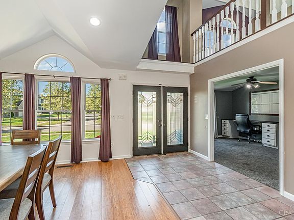 Spacious 3-bedroom, 3.5-bath home featuring a finished basement with wet bar, retractable projector screen and full bath. Gourmet kitchen with dual dishwashers, double ovens, oversized island, and vaulted ceilings. Flexible floorplan includes loft, office, and sewing room. Tons of customized built-in features like hard wired sound system, home security, central vacuum system, water softener, working fireplace & more! Primary suite with large bath and walk in closet. First floor laundry room. Flat, fenced backyard ideal for entertaining. Conveniently located near Jungle Jim's, shopping, and highway access.