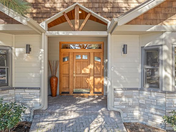 Remarkable NW contemporary home boasts 3441 sq ft of living space, with 2987 sq ft on the main level & a 454 sq ft bonus room. Offering 3 bedrooms, 2 full baths & 2 half baths, providing ample space for comfortable living. Main level features; large great room, perfect for enjoying the serene surroundings, a spacious office & formal dining room. The kitchen is a chef's dream, equipped with double ovens, granite and quartz countertops, a wine refrigerator & casual dining area. The primary bedroom boasts a luxurious ensuite bathroom, providing a private retreat within the home. Step outside to discover the outdoor oasis, featuring Trex decking spanning 1111 sq ft &1875 sq ft of concrete-paved area, built-in BBQ, hot tub, creating the perfect setting for relaxation & entertainment. Other features include a three-car garage, flat driveway, in a private forest setting with stunning views of Mt Jefferson & Mt Hood, situated on .71 acres offering unparalleled tranquility and serenity.