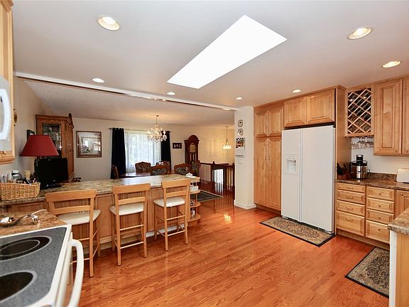 Don't miss this beautifully remodeled 4 bedroom bi-level in Aurora. Curb appeal and mature trees, landscaped. So much character in this charming home. Extensive hardwood floors throughout, new kitchen cabinets that are ceiling height with plenty of cabinet storage even under both sides of the island, finger print resistant steel matching appliances, island with extra eating space, inset lighting, 42 inch skylights, Jacuzzi tub, fantastic covered deck over looking landscaped backyard, fenced in, perfect for entertaining friends and family.This home also has a built in humidifier. 2 1/2 car garage, over sized, work bench. This home has so much to offer, it won't last long. Book your showing today! Prefer post occupancy till end of June.