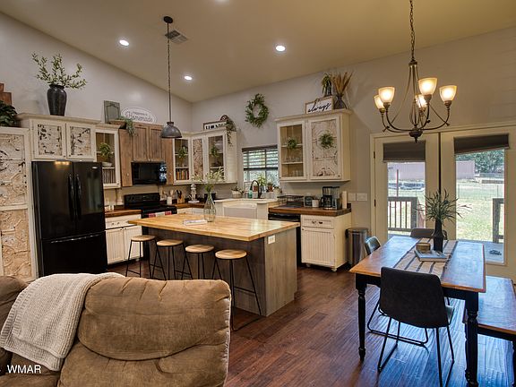 Super Cute home located in quaint Pinedale, famous for the covered bridge - located approx. 20 minutes from Show Low and 15 minutes to Taylor. The home is in good condition on a large almost half acre lot. Open floor plan with a farmhouse feel. Well appointed kitchen with center island and butcher block counters. Large master suite with door to covered deck area, master bathroom has dual sinks, dressing area and large walk in closet. Laundry room has built in cabinetry. Spacious attached 2 car garage, extra parking on side and large storage shed are additional benefits. Backyard has mature trees, is cross fenced and has a unique planter area that has water to it. Enjoy year round activities at the Pinedale community center. A lovely home, not to be missed! **MOTIVATED** Learn more about Pinedale - https://en.wikipedia.org/wiki/Pinedale,_Arizona