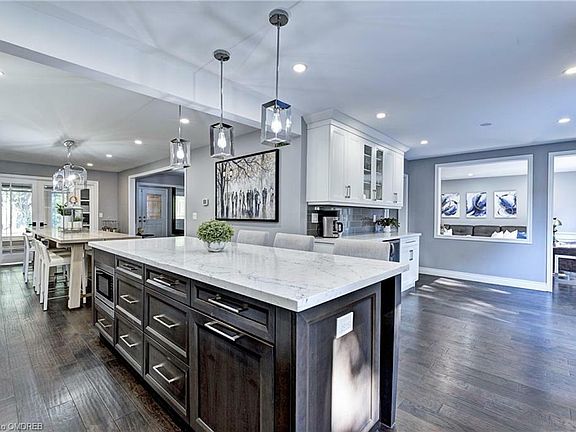 Welcome to 1278 Playter Place, Oakville! This exquisitely renovated 4+2 bedrm, 3+1 bathrm home is a true masterpiece that seamlessly combines modern elegance w/comfortable living.Situated in sought-after Glen Abbey,this home offers both style & functionality for today's discerning homeowner. Step inside & be captivated by the spacious open-concept layout,designed to maximize natural light&flow.The main lvl features a stunning gourmet kitchen w/ top-of-the-line Jenn-Air S/S appliances,quartz countertops &an oversized 14'custom dining rm table &chairs (original value of approx 30k!) that is perfect for preparing culinary creations or enjoying a family feast. The family rm areas exude sophistication,boasting rich engineered hrdwd flooring,cozy fully operational wood fireplace & large windows that frame picturesque backyard oasis complete w/ gas fire pit. Direct access to the outdoor patio,entertaining becomes effortless,whether it's a barbecue w/friends or a quiet morning coffee. The 2nd floor hosts a luxurious primary bedrm complete w/spa-like ensuite,ample closet space &built-in dresser drawers.3 additional well-appointed bdrms &another immaculate bthrm provide comfort &privacy. Downstairs,the fully finished bsmnt offers even more living space w/2 additional bedrooms perfect for a multi-generational family or that can serve as guest rms,home offices,or fitness areas.The rec room is perfect for family movie nights or even a pool table& is complete w/a water hook up for a wet bar! Every inch of this home has been thoughtfully renovated&upgraded,ensuring that modern convenience meets timeless elegance.From custom kitchen cabinetry to designer lighting &fixtures,every detail has been carefully curated. Situated in a family-friendly neighborhood,1278 Playter Place is conveniently located near top-rated schools,parks,shopping.Commuting is a breeze w/easy access to major highways,conveniently nestled between Oakville/Bronte Go Train stops &public transit.