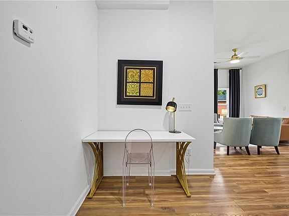 This stunning home is eligible for 100% financing through a conventional loan at a 3.99% fixed rate with no PMI. Step into modern sophistication at this new construction townhome in the heart of historic Oakland City. Built in 2023 and offering 2,160 square feet of living space, this one-of-a-kind residence combines contemporary design, intentional comfort, and an elevated aesthetic. This home is a luxury retreat. Inside, oak hardwood flooring, soaring 10-foot ceilings, and abundant natural light flow through the entire space on the main floor, grounding the home’s open and airy layout. The expansive great room is anchored by a sleek electric fireplace with custom built-in bookshelves, creating a striking focal point. The gourmet kitchen is well-appointed with Calacatta quartz countertops, waterfall island, white shaker cabinetry, open shelving, geometric porcelain tile backsplash, pantries with sliding barn doors, black stainless steel bespoke Samsung appliances, and satin brass fixtures. Floating stairs with oak hardwood stair treads and floor-to-ceiling custom iron balusters in satin brass finish set a dramatic tone for the home’s sublime atmosphere. Beneath the stairs, a wall-mounted wine rack in satin brass showcases your wine collection. Upstairs, discover three exceptionally spacious bedrooms with walk-in closets and 9-foot ceilings. The two guest suites are connected by a jack and jill bathroom. Each bathroom in the home draws inspiration from luxury spas, blending bold design with refined elegance, featuring frameless glass showers, custom tilework, and luxurious natural materials. The primary ensuite bathroom boasts a wagon wheel chandelier, a freestanding soaking tub, and an oversize tile shower designed for ultimate relaxation and rejuvenation. Beyond the home itself, the Atlanta intown neighborhood of Oakland City is strategically positioned for remarkable transformation and growth with several revitalization projects in progress, including the redevelopment of Murphy Crossing, Oakland Exchange, One West End, The Met Atlanta, and Centennial Yards. Walk to the Westside Trail of the Atlanta BeltLine and Lee + White where you can find a curated collection of local restaurants, coffee shops, breweries, and a climbing gym. Quick access to MARTA, downtown Atlanta, Mercedes-Benz Stadium, State Farm Arena, Grady Memorial Hospital, Hartsfield-Jackson Atlanta International Airport, I-20, and I-85 presents effortless convenience in navigating the city. 1278 Plaza exudes a lifestyle rooted in modern luxury, culture, and resilience - shaping the future of what's possible in Atlanta. Schedule your showing today.
