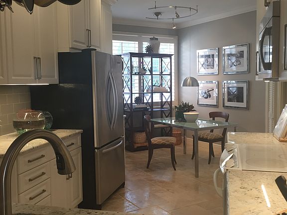 Welcome home! Come take a look at this professionally designed and completely renovated coach home that overlooks a beautiful lake and water fountain. This 2 bedroom plus a den/office and 2 bathroom offers a list of upgrades to enjoy. When you step inside this home, you will immediately notice the maple wood floors. It will then lead you up the stairs to travertine stone floors in the main living area. No attention to detail was left off. Take a look around to see the crown molding and plantation shutters throughout. Step inside the fully remodeled bathrooms including a oversized two person garden tub and shower in the master. Walking throughout the home you will see all the stylish new lighting fixtures equipped with energy efficient LED lighting. Fabulous location in a very active community which includes a Jr. Olympic-sized heated community pool/spa, tennis, pickle ball, bocce ball, fitness center, restaurant and Tiki bar with food and drink service. The tennis is an option that includes 12 Har-Tru tennis courts with on-site professional tennis instructors. Nearby beaches, sophisticated dining, theater and shopping abound. Truly an amazing location and coach home!
