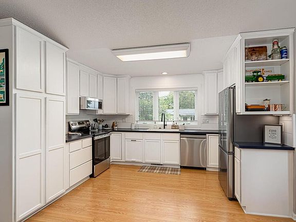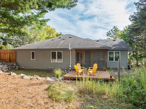 Bright, open and airy one level living in desirable Chaska location! Remodeled throughout main floor. Unfinished basement with SO MUCH potential. Main floor has two large bedrooms with 36 inch door openings/doors. Both main floor baths are remodeled/updated. The Owner Bath has a walk-in or roll-in shower. The owner suite also has a walk in closet. The main floor hallway bath also houses the laundry closet with full sized machines. Kitchen boasts all new Stainless appliances, vaults, windows surround with window coverings. Back porch is screened and walks out to new cedar colored treated deck. Yard is fenced and offers privacy and natural views. Home overlooks the river valley with amazing sunrises and sunsets. Living Room is open with vaults, ceiling fan and recessed lights. Wall fireplace with shiplap design. Basement has so much potential with rough in for future bathroom. Egress windows offer flexible options for finishing. Basement has interior drain tile system and radon mitigation system. Water softener present, but not plugged in or operating. Garage is fully insulated and heated. Driveway is concrete. This home is ready to be moved in and enjoyed immediately! Walking distance to Lion's Park, Fireman's Park, trails, rivers, downtown amenities, shopping, restaurants, conveniences and more!