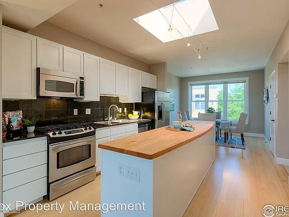 Grab a drink & pizza at Proto's or latte at Spruce Confections! STUNNING mountain views! High ceilings, south-facing location, open floor plan & two large skylights = lots of light. Spacious kitchen with stainless apps, gas range, 11' island for entertaining & granite counters. Washer/Dryer. One block from park! Close to bus. One car garage. Available August 1.