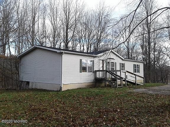 Looking for your hidey hole?? Here it is Assyria Twp. Hastings Schools Paved Drive to Hidden Fixer Upper 1991 Doublewide W/Natural Gas & Full Walkout Basement On 25+ Beautiful Wooded Acres Including Over 500 Ft of Fruin Lake Frontage.Selling As Is, Bring your cash Offers at $150,000
