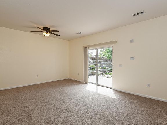 3 Bedroom 2 Story Town Home in desirable Sage Creek. Enjoy this Large open main level floor plan with High Ceilings and Recessed Lighting. Huge Great room, Kitchen with spacious cabinets & plenty of counter space including Stainless Steel Refrigerator, Stove and Microwave, Dining area, Breakfast bar and Pantry. On the upper level you'll find the spacious Master suite complete with Walk-in closet and Vaulted ceiling, Large 2nd & 3rd bedrooms, Full bath, and Laundry complete with washer & dryer. Other features include Central air conditioning, Fenced-in backyard with Patio and attached Storage shed backing to Greenbelt and walking path, Two Deeded Reserved Parking Spaces directly in front of property, New carpet and Paint, Attractive Stone and Stucco exterior, Community Pool & Playground area.