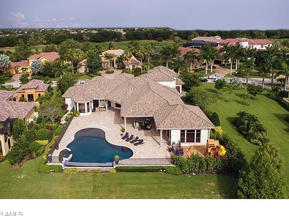 Distinctive Architecture, classical detailing, and fine finishes define this exceptional high tech property. This home is has 4 bedrooms plus a den, bonus room and theatre room. This Impeccably built & well appointed custom home is located in The Renaissance, one of SW Florida's Newest Upscale Golf and Country Club Communities. The following are just some of the many features this home has to offer: Private Gym/Au Pair suite w/ separate entrance, 3,860 sq ft of outdoor patio area, Whole house generator, Full custom audio/video, Creston & lutron system for home automation, Large pebble stone custom salt water negative edge pool &spa overlooking lake and golf course, Terrazo Stone Floors inside and out, Gourmet appliances in a kitchen that any chef would love,2 Central Vac units, 16 camera cctv system, Private Theatre, electronic blinds, Impact glass windows & doors, Solid concrete construction, outdoor fountain, landscape lighting, game room upstairs, master shower jet system, Jacuzzi master bath, fully equipped outdoor kitchen, and a natural mosquito system. Perfect proximity to everything SW Florida has to offer.