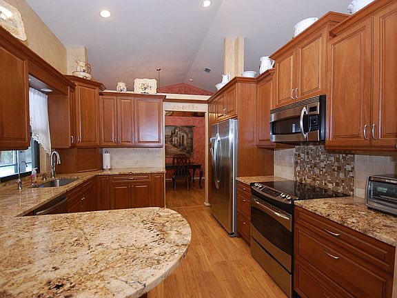 Welcome Home to the Acreage. If you are looking for wide open spaces...look no farther. This beautifully maintained 3 bedroom 2 bath home sits on 1.29 acres that has been fully sodded, irrigated and fenced. An automatic gate opener makes entering and exiting a breeze. This home has been tastefully updated to include kitchen with granite countertops, tumbled marble back splash, stainless steel appliances, wood cabinets with soft close feature, and wood, laminate flooring through out. Original owner shows pride of ownership in this immaculately maintained home. A new air conditioner was installed in 2015 and roof replaced in 2005. Step outside to enjoy the large lanai and over sized, twenty, by 36 foot heated swimming pool and spa. Lush tropical landscaping surrounds the pool making you feel as though you have escaped to a tropical island retreat. This, and so much more to enjoy. Schedule your private showing today. You will not be disappointed!