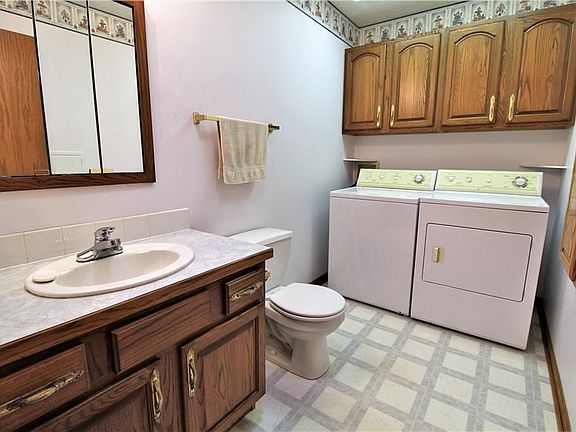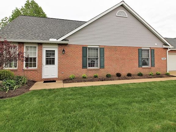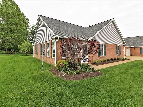 55+ community, this unit has over 1400 square feet. Kitchen was upgraded to hickory cabinets when built. There is oak woodwork, 6 solar tubes were installed to increase light and save on energy costs. Oak built in desk and storage cabinets added in Master bedroom, built in ironing board in first floor laundry, there is a two car attached garage with wash tub and extra shelving will be left with the home. There is a partial basement for additional storage or could be a small finished rec room. This is an end unit and there is a beautiful view of a field that often has deer hanging out eating the grass. The room sizes are approximate and not verified.