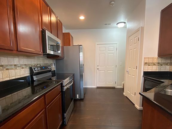 Stunning 3 bedroom, 2.5 bath end unit townhouse in Thornton's popular Ash Meadows subdivision. Upgrades in this home include brand new appliances, fresh paint throughout the house, hand scraped hardwood floors, beautiful slab granite kitchen counters, cherry cabinets, central A/C, a gas fireplace, a large primary suite with double closets, and a private bath with double sinks. This corner unit includes an extra parking area and a beautiful lake view. No smoking allowed. Owner pays the HOA fee.