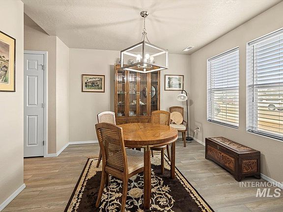Charming single level with low maintenance landscape, beautifully designed with river rock, perfectly placed shrubs and raised garden beds. Extended/Upgraded concrete patio that flows along the back and side of home. Inside features a large front room, perfect for dining or office area. The kitchen is open to family/living space and features an oversized breakfast bar/island. Soft close cabinet drawers. The master suite has dual sinks, walk-in shower and roomy walk-in closet. Conditioned crawl space (HERS Rated) for lower utility cost. Fishing, boating and nature preserve close by at Lake Lowell Recreation area. Quick hwy 55 access to shopping center.