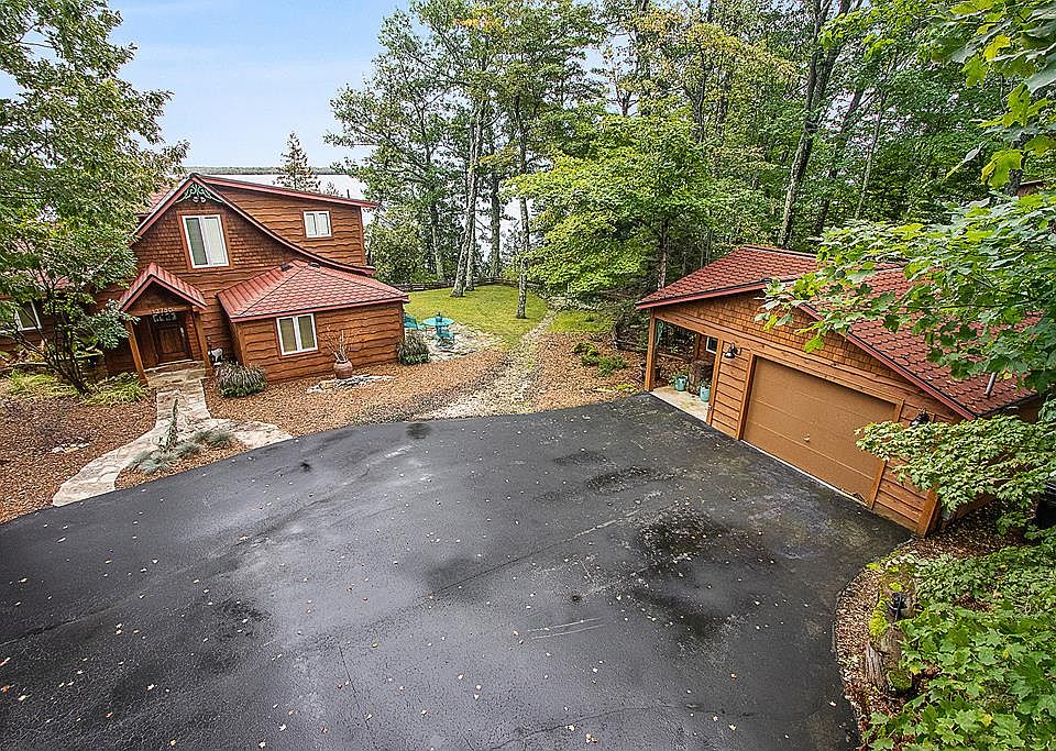 Come to the "Top of the World"! This is a one of a kind exceptional home. Think outside the box w/ the creativity & design that went into creating this Northern haven. View the ferry crossing, Detroit, Pilot, Plum & W Island from your living, kit & bdr. Kit is customized, lr is cozy. Tons of extra's including a massive walkin closet in the upper m. suite w/ a view & a bthr w/ a steam shower. Main floor bdr is nestled in the back w/ views of the water from each window. Main fl bath is rubberized & has heated floors, whirlpool tub w/ disco lights & a waterfall feature. Bment was an old boathouse turned "tree house". Several levels w/bedroom, living area & rec room. 2 heating sys. You have to see it to appreciate it. To many details to list.