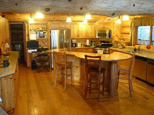 This log home is a masterpiece! The logs vary from 14 to 22 inches, the kitchen is perfect for cooking and entertaining, the lake view is fantastic. Top it all off with massive vaulted ceilings and a large lake side covered porch. Property is very private
