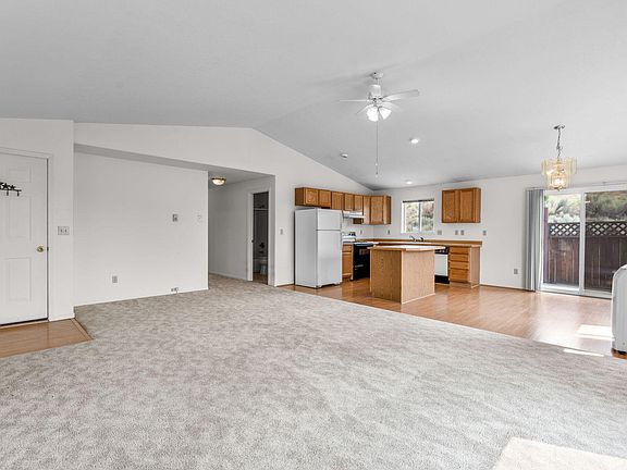 So much potential in this affordable FRAME BUILT home for an owner-occupant DIY-er or investor's project! At 1344 sqft, this 2 bedroom, 2 bath home feels cozy yet spacious. Peek-a-boo mountain views from the private and shady front deck. Enter the home into a bright, open living space under vaulted ceilings, extending into the kitchen and dining area. Primary bedroom features walk-in closet, step-in shower, and glass slider onto the back concrete patio. Spacious laundry room includes room for additional storage. Built-in shelving/work benches in the attached 2-car garage. Huge gravel parking area next to the home means plenty of room for your RV, boat storage, or build the shop of your dreams! Corners have been marked by a surveyor so you can create your vision. Expand the existing concrete patio for a larger entertainment space? Add privacy fencing or a vegetable garden? Fence the perimeter for your pets? The possibilities are endless. This property is priced to sell so don't wait!