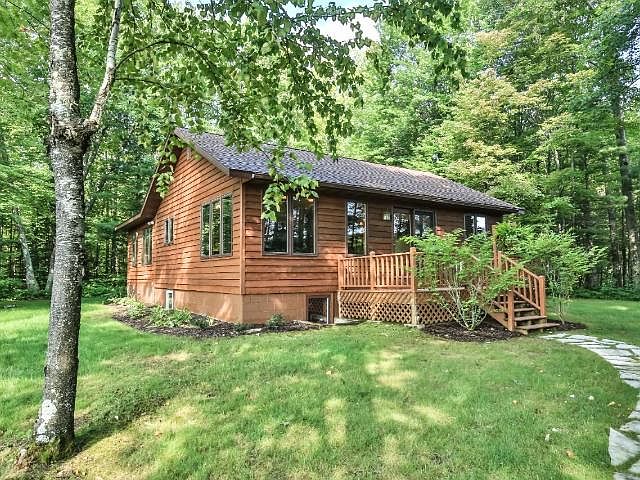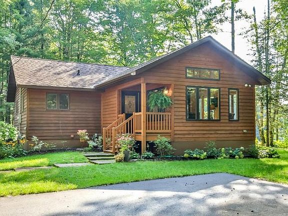 Private setting w/427' ftg & 2.75 acres located on the Manitowish Waters Chain! 3+BR, 1BA meticulously kept cedar sided charmer is located on the Trout River between Alder & Wild Rice Lakes. Enter this lovely home through a beautiful covered deck & into the LR w/vaulted wood ceilings, tons of windows & wood burning free standing stove. K has a large walk-in pantry, breakfast bar & wood cabinetry. K is open to the DR & FR w/wood beamed accented cathedral ceilings & more lakeside windows! Lakeside deck is accessed from the french doors in the FR and takes you down the beautifully landscaped granite path to the lakefront. Main floor also hosts a nice bedroom with built in closet & drawers, office/den & full bath w/tiled shower. LL has 2 BR's, den and utility room with laundry. 2 car detached garage plus new woodshed! Exterior grounds are landscaped and include a lakeside firepit and pathway which takes you through the woods to a point with lake views on all sides! 2BR Septic.